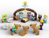 Every figure is styled in colorful, approachable pixel art, making this set a joyful and accessible holiday activity for the entire family.